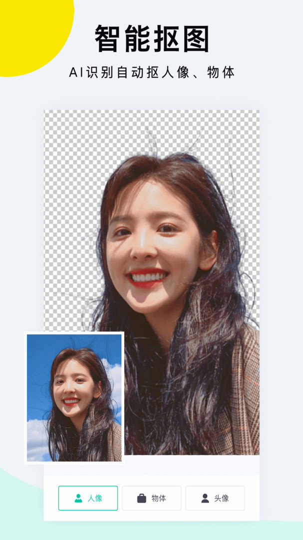 快速抠图:选择本地图片,选择需要抠图的部分即可完成抠图;