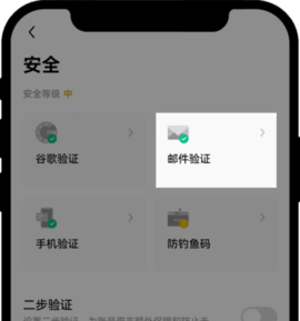 在“安全设置项”下找到“邮箱验证”,点击“更改邮箱”。
