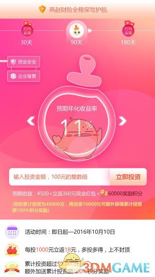 “现金宝”是奶瓶儿理财推出的定期理财服务,可满足投资人对资金流动性和预期收益的不同需求;