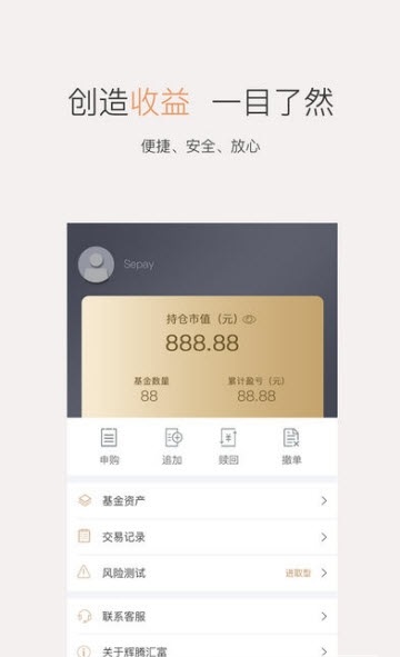 用心做投资,深度分析各类人群的理财需求,提供低、中、高三种风险的理财产品,涵盖各行各业各种经济状况的家庭与个人。《辉腾基金》是您强大而专业的理财工具,为每一位客户 提供最优质的服务,行业顶尖的理财水平,让你有所得!