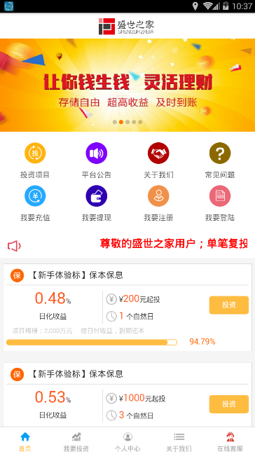 盛世之家app是一款拥有庞大用户基础的非常专业金融投资理财服务平台。盛世之家理财既安全又专业,盛世之家app资金由银行存管,采取多重安全风控措施,保证每一位用户的资金,投资更放心!