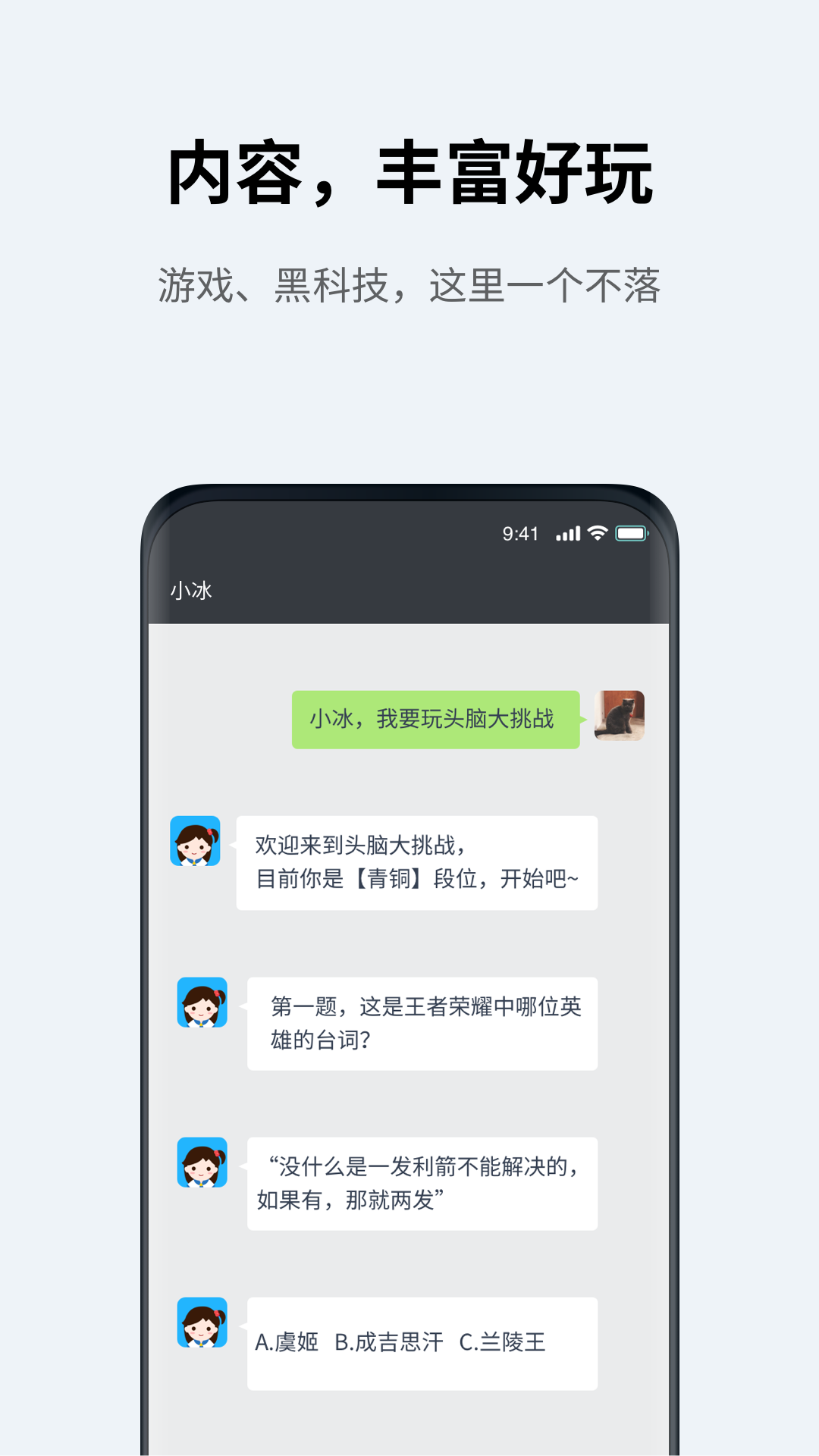 小冰虚拟男友聊天app这是一款很受欢迎的ai智能虚拟男友,大家可以随时召小冰男友与你聊天、玩游戏、k歌等等,还可以在不同场景控制小冰做出相应的反应,而且用户有各种不开心不愉快的事情都可以对它吐槽,小冰还会每天叫你起床,在入睡时给你讲各种睡前故事,达到一个虚拟男友的标准,需要就来下载试试吧!