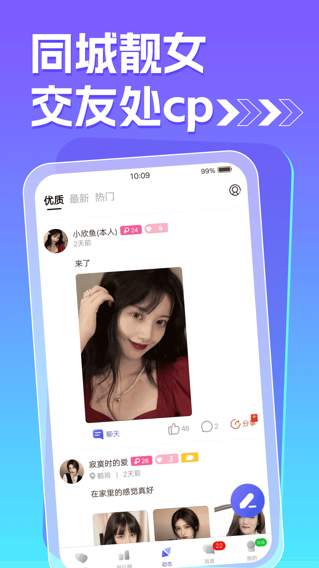 实时动态、同城约会,展示个人魅力,分享生活趣事,收获好感!