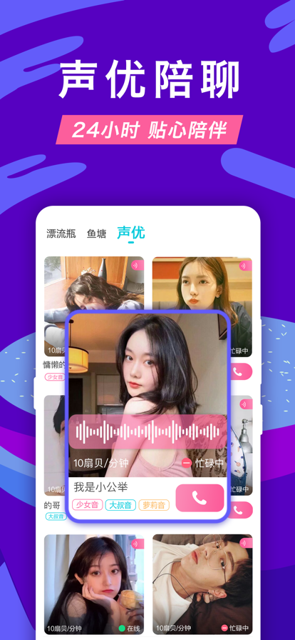 精选独具特色的那个TA,萝莉音、逗趣小哥哥、御姐范、知心大姐、东北老铁,遇见有趣的那个人。
