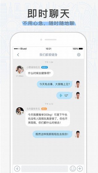 Blued布鲁帝软件是一个轻松体验同志秘密交友方式的软件,在这个社区中同志们都可以随心所欲的去聊天,不需要担心自己聊天信息被泄露出去,这样的聊天交友方式会给大家带来更安心社交的感觉,无需担心外界用有色眼镜去看待!