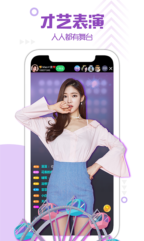 (1)看直播,现场k歌唱歌,叫麦搞笑,现场搞笑,随时随地拿出手机看自己喜欢对象的在线视频选秀节目,免费观看。