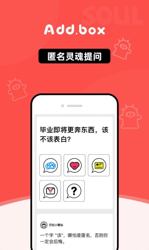 addbox社交,这是一款匿名交友软件。通过匿名方式进行社交,让更多想要脱单,但是害怕社交的用户们放心的进行互动交流等。在这里,通过有趣的方式完成社交,并且在该软件中解锁更多精彩有趣的体验,让自己可以快速的寻找到另一单,完成脱单等。