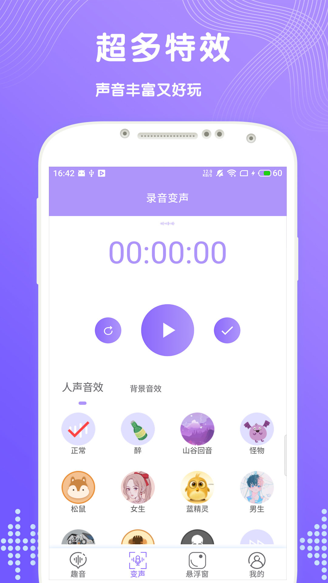 各种音效:机器人,松鼠,女对男,男对女,自定义音效!