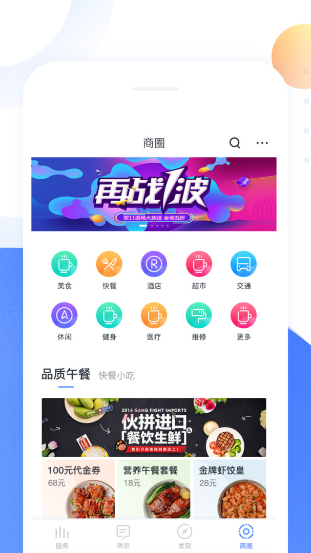 智慧商圈:园区专属的本地生活平台,整合园区及其周边优质商家和服务,餐饮、酒店、租车、健身房应有尽有,将便利融入办公和生活。