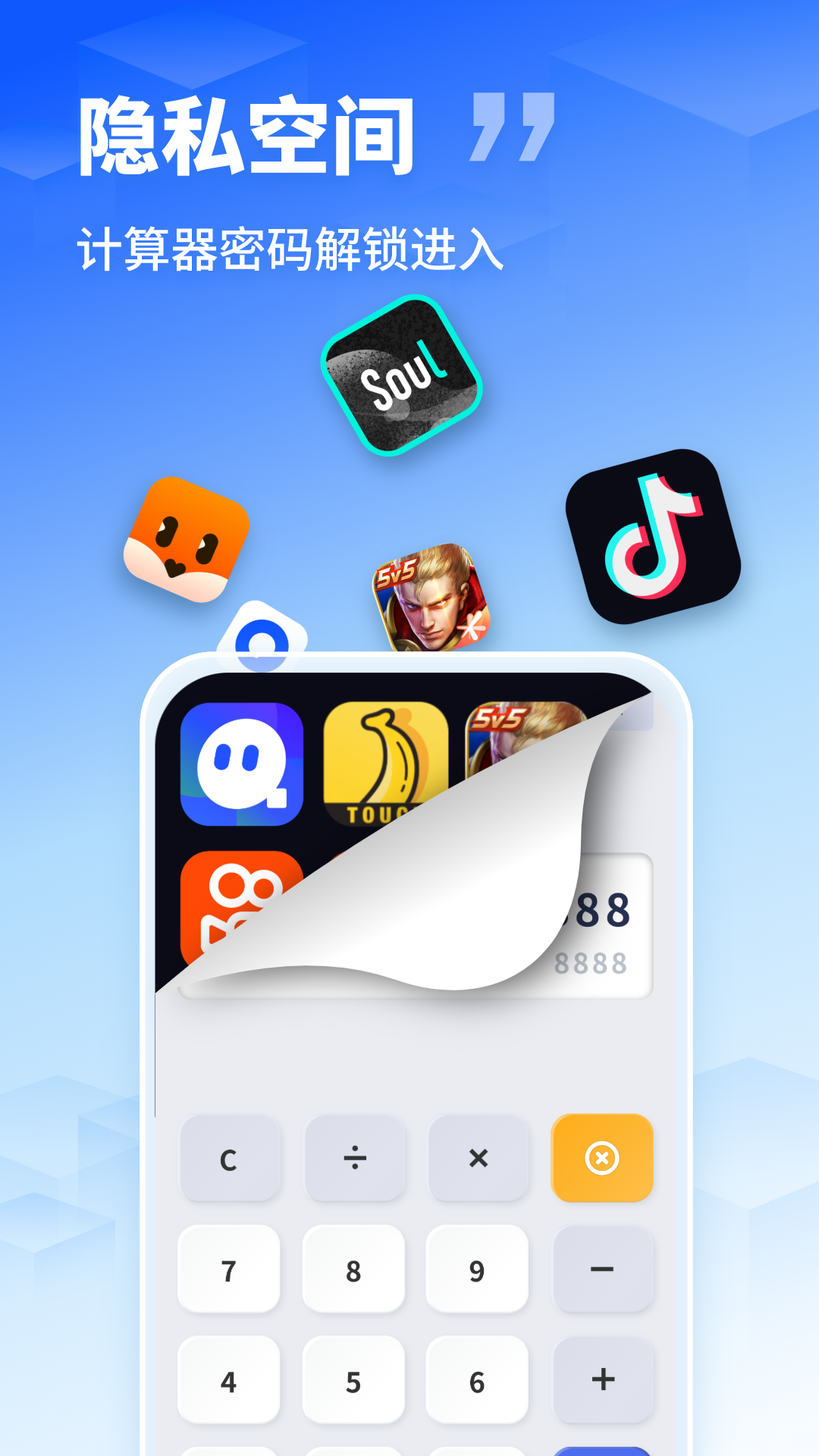 同时应用隐藏伪装助手可以将自己伪装成计算器,在计算器中输入相应的数字安全码后进入隐藏空间,实现彻底隐藏;您也可以将私密照片放到隐藏相册中实现隐藏照片。