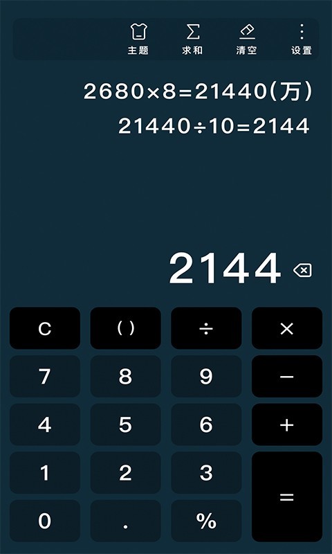 运算过程完整记录,方便随时查阅编辑运算过程 黑白主题皮肤:黑白两种主题皮肤,简洁大气,精美炫酷 操作简洁高效:启动快、操作方便,简单高效、超级省时!