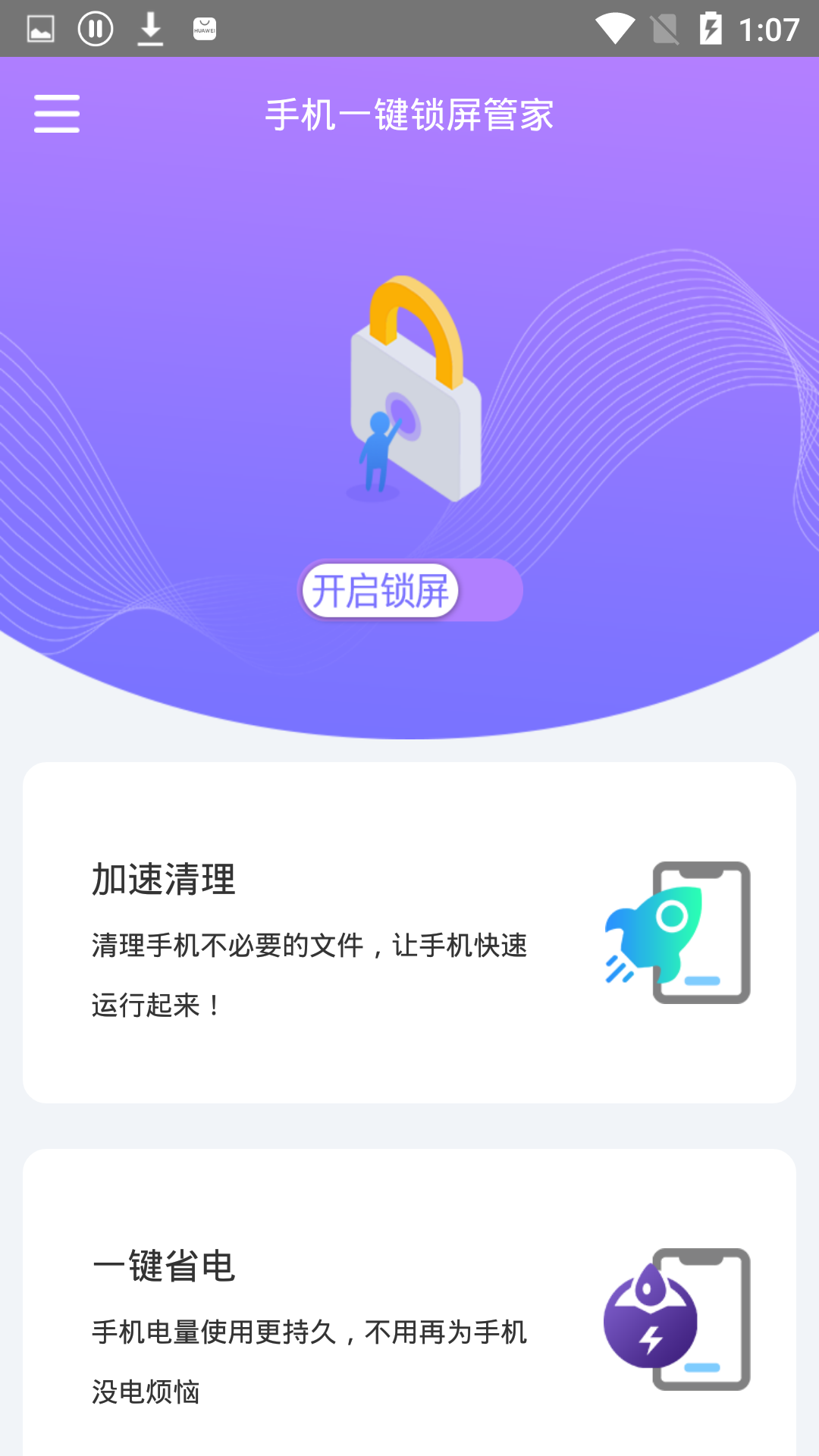 手机一键锁屏管家是一款绿色纯净、体型小巧的实用软件手机桌面上,点击手机一键锁屏管家,即可快速锁屏,减少手机电源键使用,延长其使用寿命。