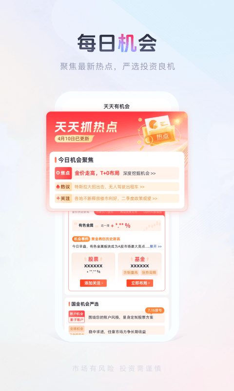 1.便捷的股票开户服务:支持7x24小时在线开通沪深A股股票账户,支持在线开通北交所、港股通、创业板、科创板、基金理财等证券账户或投资权限。