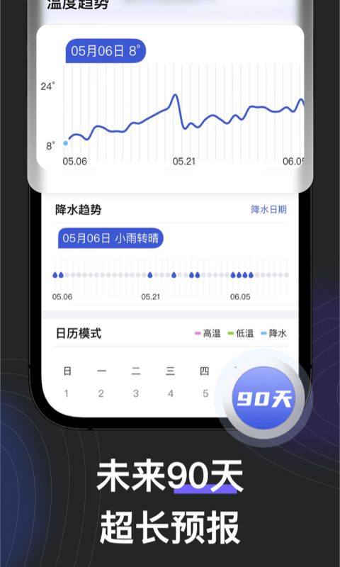 提供90天逐日预报及168逐小时预报,助您更好的规划未来行程,出行轻松无忧。