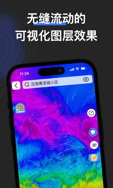 有雨时看气象雷达,全新配色。无雨时以全新视角看云图,天气一目了然。