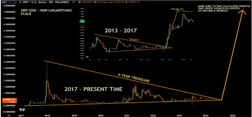 有趣的是,Jaydee的技术分析是基于XRP的非对数价格规模和之前的事件。尽管过去六年价格波动,但自2017年创下3.40美元的历史高点以来,瑞波币一直在下跌通道内交易。