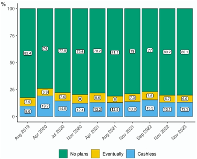 加拿大人对无现金未来的抵触情绪是加密货币普及缓慢的主要原因之一。调查结果显示,超过80%的受访者表示他们没有计划在未来放弃使用现金,这一趋势自2019年以来一直保持稳定。这种对传统支付方式的坚守,反映了加拿大人对于货币形态变化的谨慎态度。