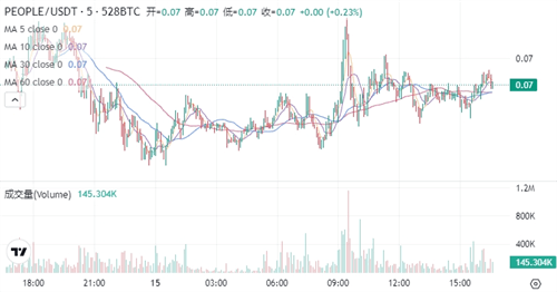 7月12日,PEOPLE币经历小幅上涨: 开盘于0.061276美元,最高上涨至0.062579美元,随后有所回调,最低跌至0.059204美元,最终收盘于0.059828美元。全天交易额高达11.48亿美元,市值维持在3.02亿美元水平。
