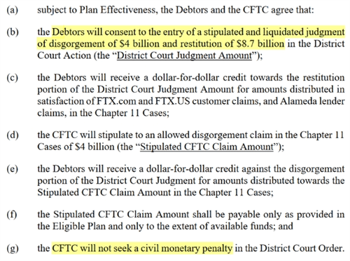 此外,FTX还强调,CFTC作为第11章破产案件中的“最重要的单一债权人”,其支持和配合对于公司重组计划的成功至关重要。随着和解协议的达成,FTX的重组计划也进一步明确了债权人的偿付方案。据透露,该计划旨在使98%的小额债权人(索赔额低于5万美元)获得高达118%的回报,远超其原始投资金额。