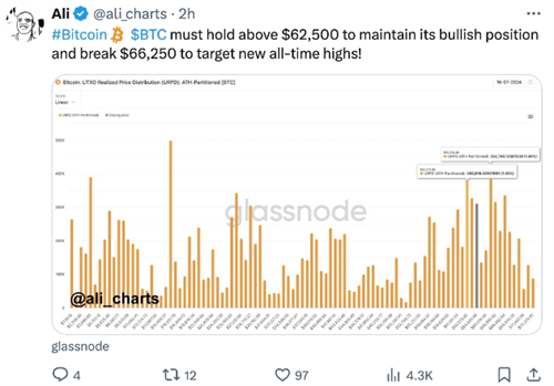 另一位分析师Ali Martinez则指出,BTC/USD货币对需要保持在62,500美元上方才能维持当前的复苏势头,并有望进一步向历史高点发起挑战。他同时提到,Mt.Gox准备将180,000 BTC重新分配给债权人的消息虽然对价格影响不大,但仍是市场关注的一个焦点。