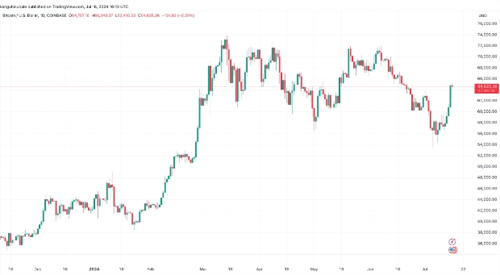 根据Cointelegraph Markets Pro和TradingView提供的数据,比特币在7月15日触及低点62,410美元后,迅速反弹至日内高点65,240美元,展现出强劲的上升趋势。这一价格水平自6月18日以来首次被突破,当时比特币在德国政府BTC销售消息的冲击下,从66,574美元的高位滑落至7月5日的53,499美元低点。