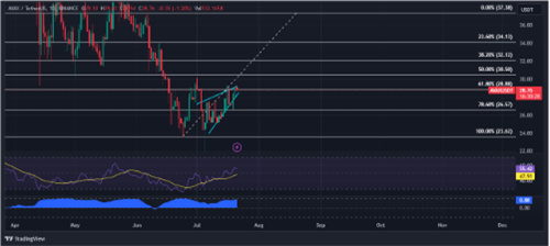 到目前为止,多头对空头有轻微的优势,这种优势在未来几天可能不会持续下去。尽管与比特币等主要货币的相关性有利于重新夺回32.12美元的价格区间,但多头要再次达到这些高点还需要时间。