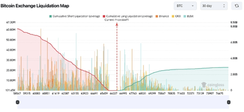 Jelle进一步提到,根据CoinGlass的数据,当前市场存在高达70亿美元的潜在BTC空头清算额,这可能为比特币的进一步上涨提供动力。