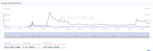 来自IntoTheBlock的数据显示,在过去7天里,这些大额交易增加了2%以上。进一步的数据显示,过去24小时内的交易量为3656.9亿SHIB。与此同时,这些大宗交易在7月22日创下了7天新高,当时这些投资者交易了2.14万亿SHIB。