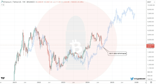 然而,也有分析师持不同观点。他们认为,以太币价格可能已经触底,并可能在未来出现反弹。Crypto Bullet等匿名分析师在社交媒体上表示,通过分形模式分析,以太坊的价格走势与过去几年的周期存在相似之处,暗示近期可能出现价格突破。