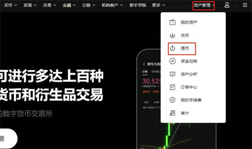 2、在首页点击【资产管理】选择【提币】进入提现页面