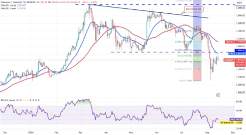 然而,如果买方能够推动价格突破2850美元,这将是一个积极的信号,表明市场已经拒绝了更低的价位。在这种情况下,ETH/USDT货币对可能会尝试向50日简单移动平均线(3118美元)发起冲击。然而,值得注意的是,这一水平可能会吸引卖方的注意,因此价格在该区域可能会遭遇一定的阻力。