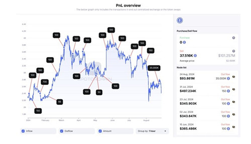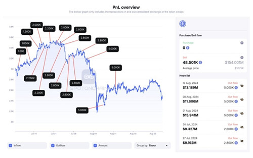自7月25日以来,这名巨鲸两次向Kraken存入了7,390万美元的ETH(2.5万枚),且在这两次出货后,ETH价格分别下降了7.6%和2.5%。目前该巨鲸仍持有4.16万枚ETH,预计其总利润为1.27亿美元。