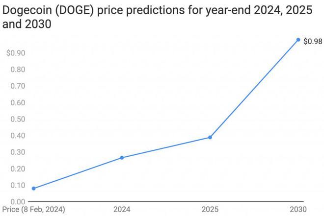 此外,根据 Finder 小组成员的预测,到 2025 年底,DOGE 的价格将升至 0.389 美元,到 2030 年底,该 meme 币的价格将升至 0.98 美元。