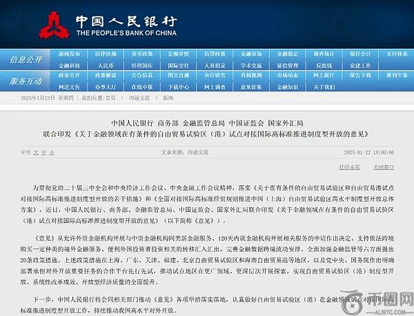 2025年1月22日,中国人民银行、商务部、金融监管局、中国证监会和国家外汇局等五大部门发布了一项文件,明确表示支持粤港澳大湾区内地居民通过港澳金融机构购买港澳金融机构销售的合格投资产品,这一政策被市场解读为中国可能会逐步放宽对加密货币的禁令。