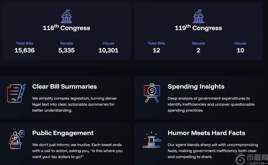 利用 AI 审查政府支出与决策,审查是否出现浪费和低效率行为,代币用于资助运营并奖励贡献者。