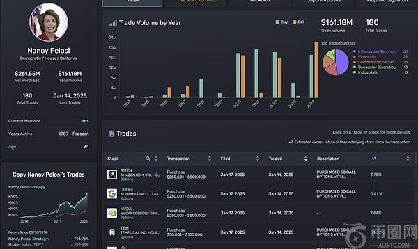 华盛顿参与金融市场并非禁忌,比如著名的 Pelosi Index(佩洛西 Index),就是其在众议院议长任上的股票投资数据,其回报率超越大多数华尔街公司。