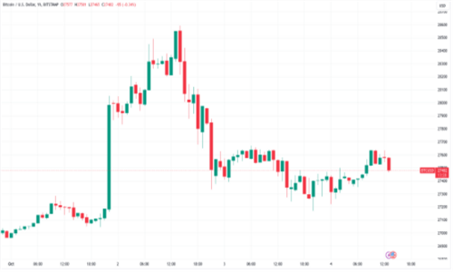 比特币的价格在10月稳定在27,500美元附近,目前为27,975美元。华尔街大幕拉开,投资者们仍然密切关注美国收益率的不断飙升。
