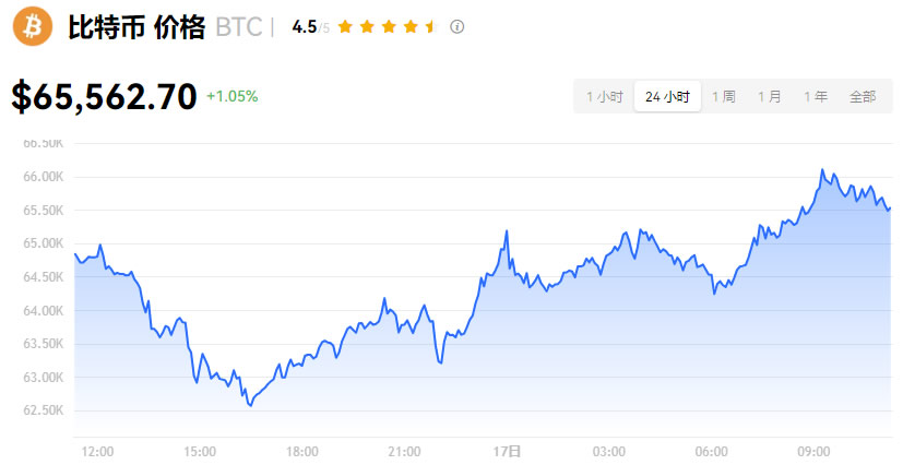 名字Bitcoin/比特币符号BTC排名1价格$64,782.58价格变动(24小时)US$61,365.84 – US$64,960.92价格变动(7 天)US$56,537.89 – US$64,894.81市值$1,278,609,627,440历史最高$$73,737.94(-12.1%)历史最低点$67.81(+95450.5%)流通供给量19,726,181 BTC最大供应量21,000,000 BTC(数据更新至2024/7/16)