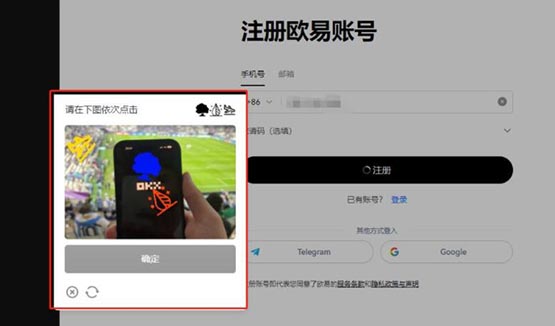 1、在欧易交易所首页点击【注册】进入注册欧易账号页面(点击注册),选择【手机号】,输入手机号,点击【注册】即可