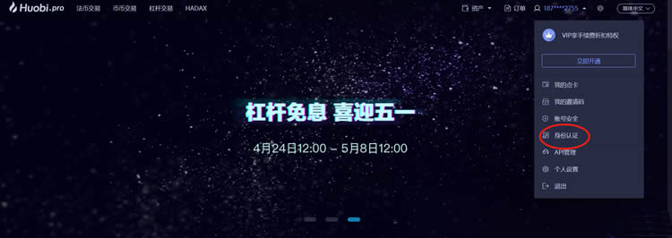 1.点击首页右上角自己的账户位置,点击“身份认证”。