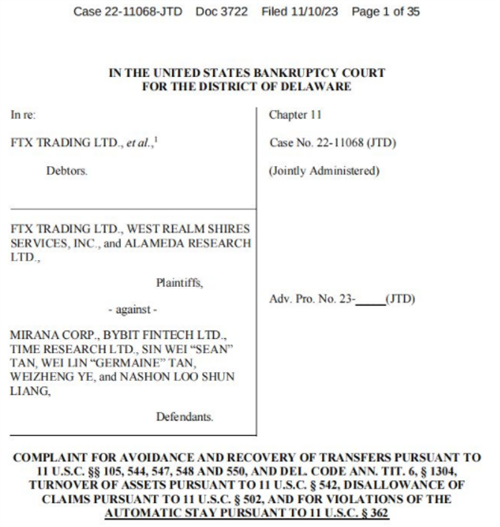 由首席执行官约翰•J领导的富时公司破产资产。雷三世已经起诉了比比特,其投资部门米兰,以及许多高管。其目的是要收回BITBIT在交易所倒闭前撤出的资金和数字资产,其现值接近10亿美元。