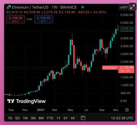 然后,ETH进行了修正,并且上涨了125%,达到了$4.8K。我虽然被边缘化了,但至少通过稳定币获得了不错的收益。