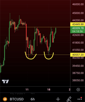 伴随的图表突显了涉及12月支撑位40000美元的双底结构。