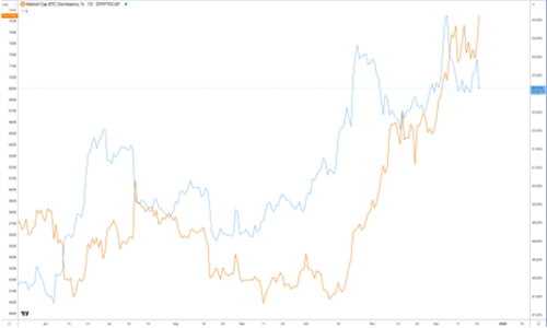 使用技术分析的交易者通常将比特币主导地位的下降和比特币价格区间交易或价格整合视为山寨币价格可能突破的迹象。