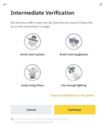8. 系统会提示用户进行人脸认证。点击【继续】,在电脑上根据提示完成人脸认证。请勿戴帽子、戴眼镜或使用滤镜,并确保充足的照明。