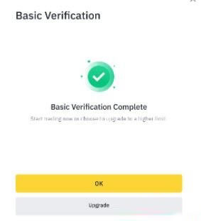 4. 帐户已通过基础验证。然后,请点击【升级】进入中级认证。