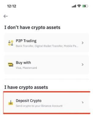 2. 点选【充值加密货币】。