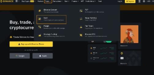 2. 选择上方导览列上的 【交易】,然后点击 【现货】。