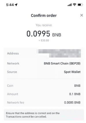 7. 点击【买入BNB】以完成交易。可以按照相同的步骤来卖出BNB。