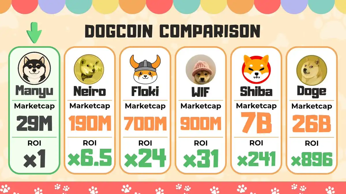 项目上线短短五天内,热度直冲 CoinMarketCap 第一,7 天涨幅高达 14 倍,目前市值已突破 4200 万美元,持币地址已超过 10,000 个,曝光量突破 70 万次。$MANYU 渴望通过「IP + 社群 + 纯情绪驱动」的轻模式路线打造出继 $DOGE、$SHIB 之后最有潜力的柴犬新王者。